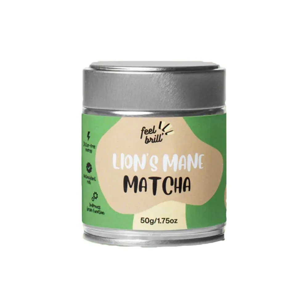 В отличие от других порошков гриба львиная грива, порошок, используемый в чае «Feel Brill», изготовлен из водного экстракта с особенно высокой концентрацией лучших свойств львиной гривы. Этот порошок водорастворим и имеет тонкий вкус, что делает его идеальным для ежедневных ритуалов матча.