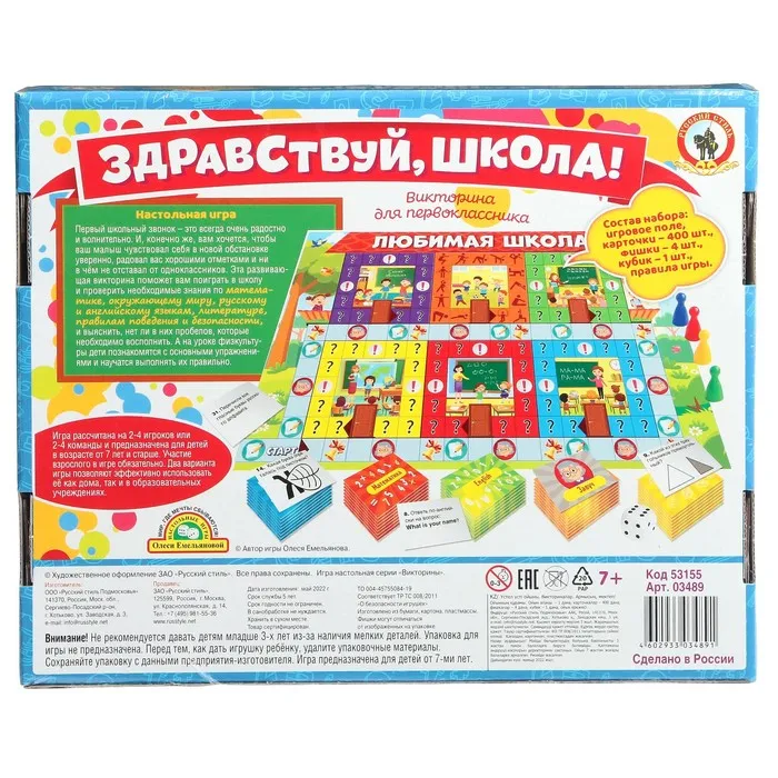 Викторина первоклассника 7в1 «Здравствуй, школа!», подарочная — Характеристики