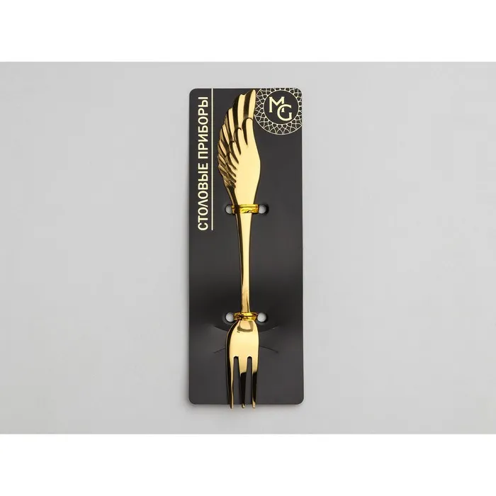 Вилка десертная Magistro Wings, длина 14 см, нержавеющая сталь, золотистая — Характеристики