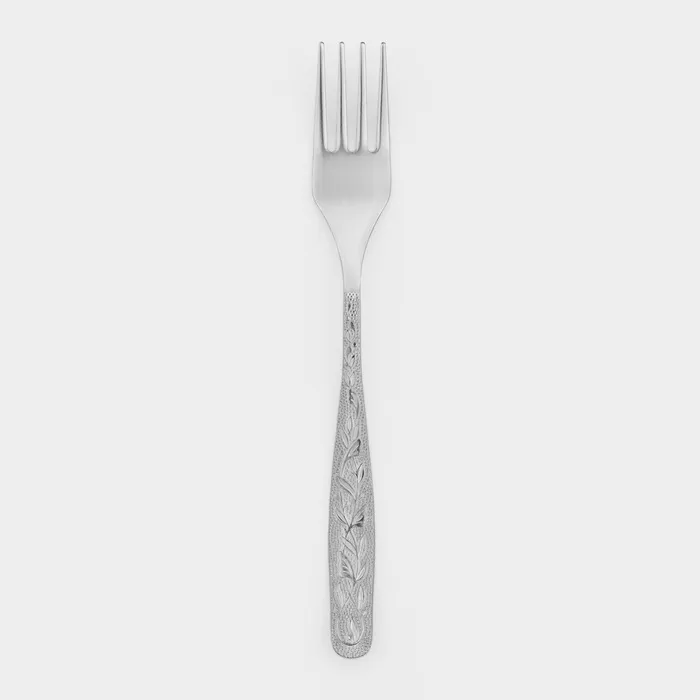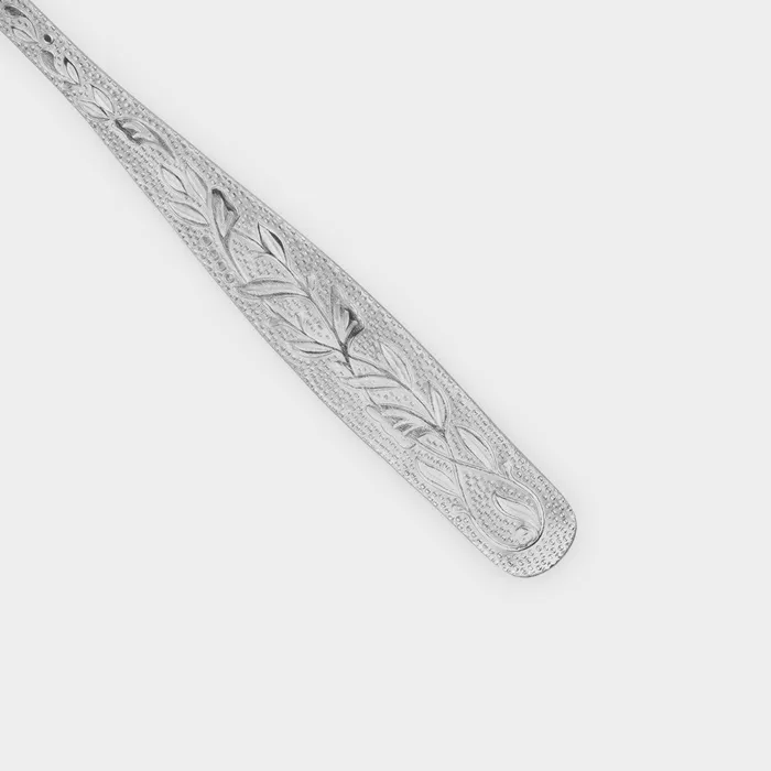 Коллекция столовых приборов "Уралочка" воплощает элегантную простоту. Каждый предмет серии обладает классической формой и размерами, украшен изысканным растительным орнаментом по лицевой стороне ручки.