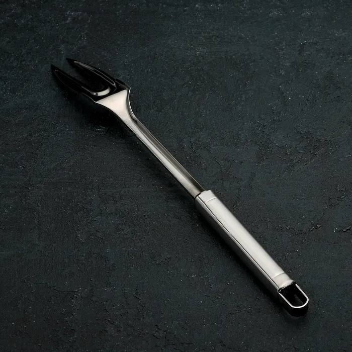 Металлическая вилка с крупными острыми зубцами незаменима при приготовлении стейков и отбивных. С этим предметом значительно легче переворачивать и извлекать куски мяса и рыбы.