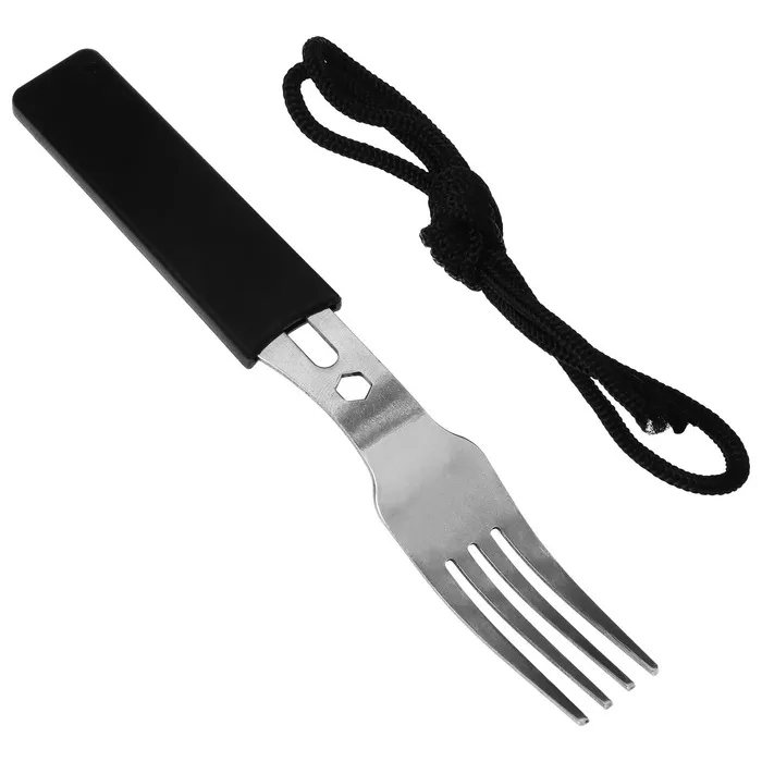 Вилка-нож — необходимый аксессуар для туристических походов. Модель оснащена пластиковым чехлом. Изделие весит немного и занимает мало места в рюкзаке.