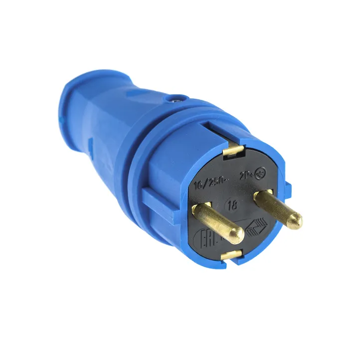 Вилка переносная В16-001, 16 А, 250 В, IP44, с з/к, каучук, синяя — Характеристики