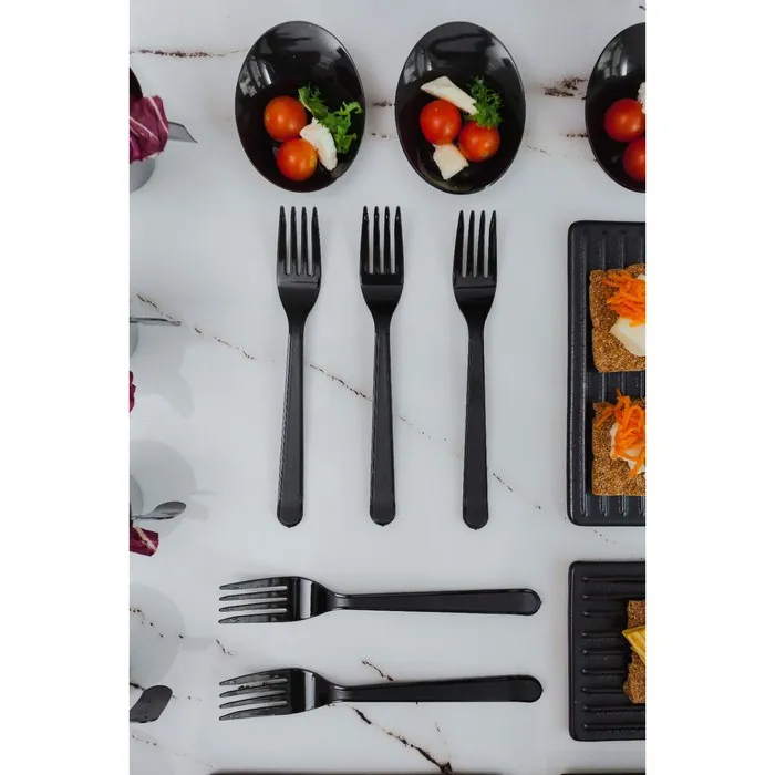 Эта элегантная черная вилка – незаменимый аксессуар для кейтеринговых компаний, организаторов мероприятий и всех, кто ценит свое время и комфорт. Она станет стильным дополнением к любому блюду и подчеркнет изысканный вкус организаторов.