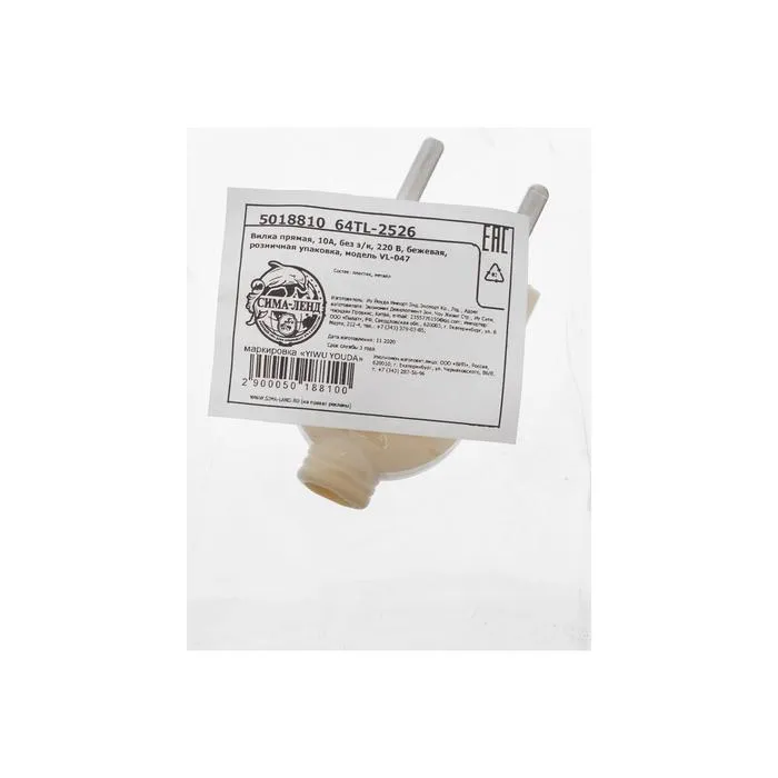 Вилка прямая, 10А, без з/к, 220 В, бежевая, розничная упаковка. — Характеристики