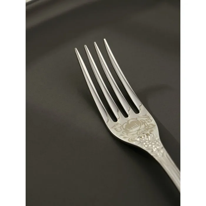 Столовая вилка - станет украшением праздничного застолья и будничного обеда. Её классический, изысканный дизайн не уступает приборам из серебра, при этом нержавеющая сталь не требует столь щепетильного ухода и чистки. Она сохраняет естественный блеск долгие годы без лишних усилий с вашей стороны.
