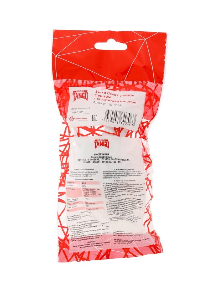 Вилка угловая с ушком TANGO, 16 А, 250 В, IP20, с заземлением, белая — Характеристики