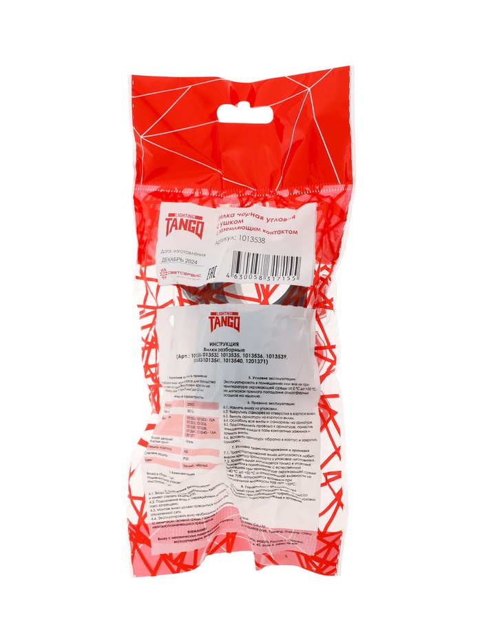 Вилка угловая с ушком TANGO, 16 А, 250 В, IP20, с заземлением, чёрная — Характеристики
