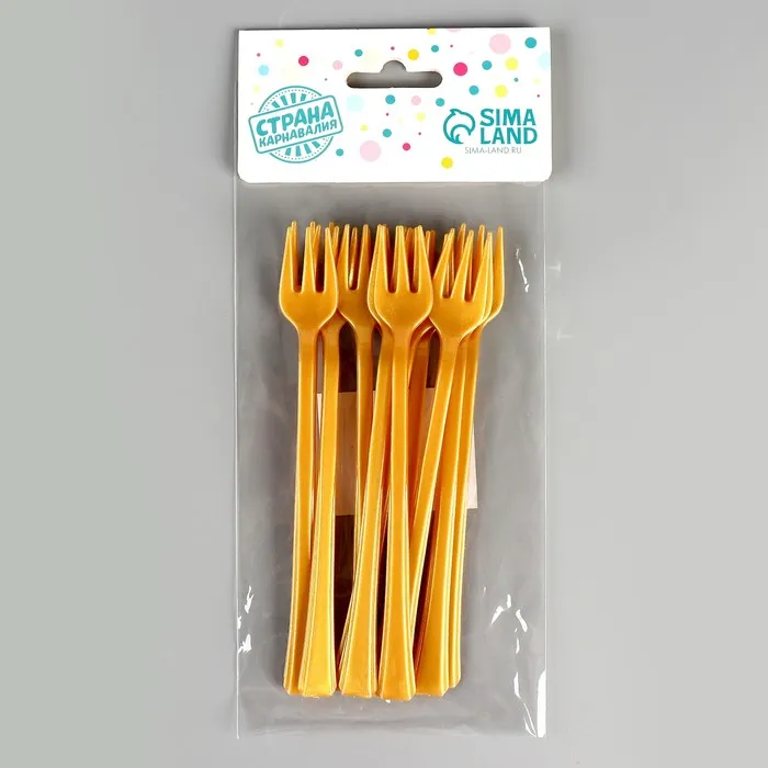 Вилки пластиковые, в наборе 12 штук, золотые — Характеристики