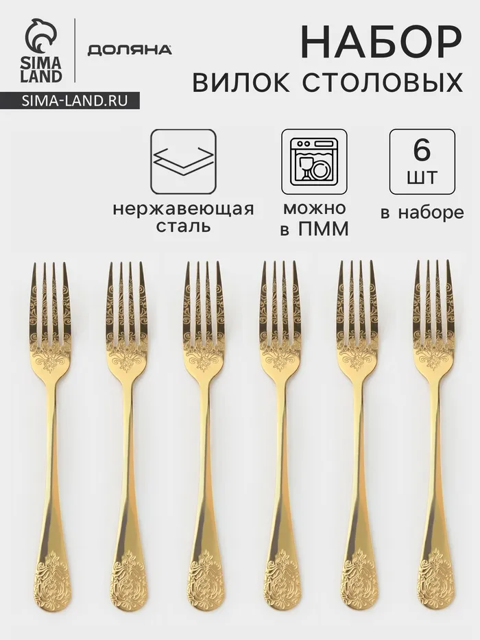 Вилки столовые Доляна «Эмили», длина 20.5 см, 6 шт., нержавеющая сталь, золотистые — Характеристики