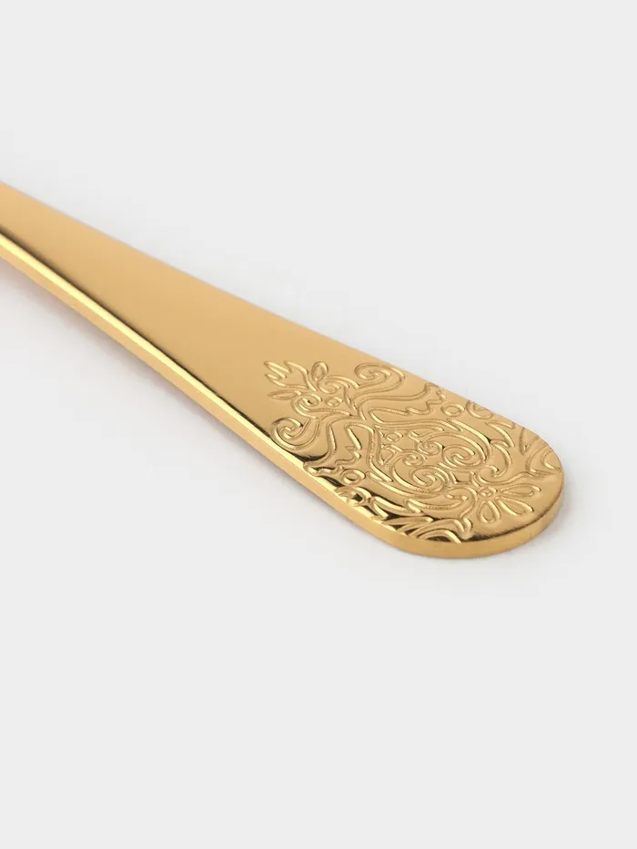 - Изящный декор: лаконичный узор придаёт набору утончённый вид, не утяжеляя дизайн. Золотистый оттенок гармонично сочетается с классической и современной посудой