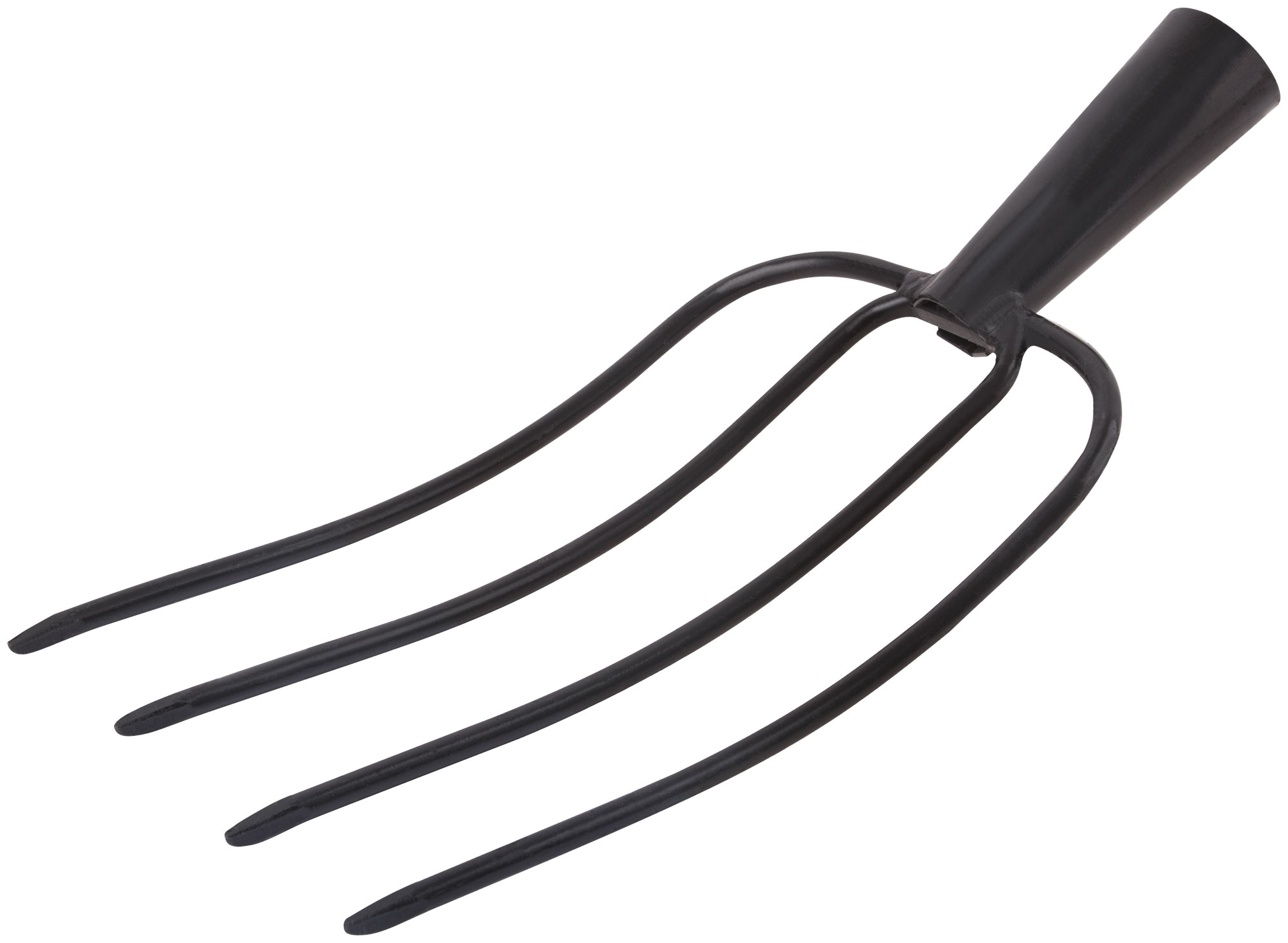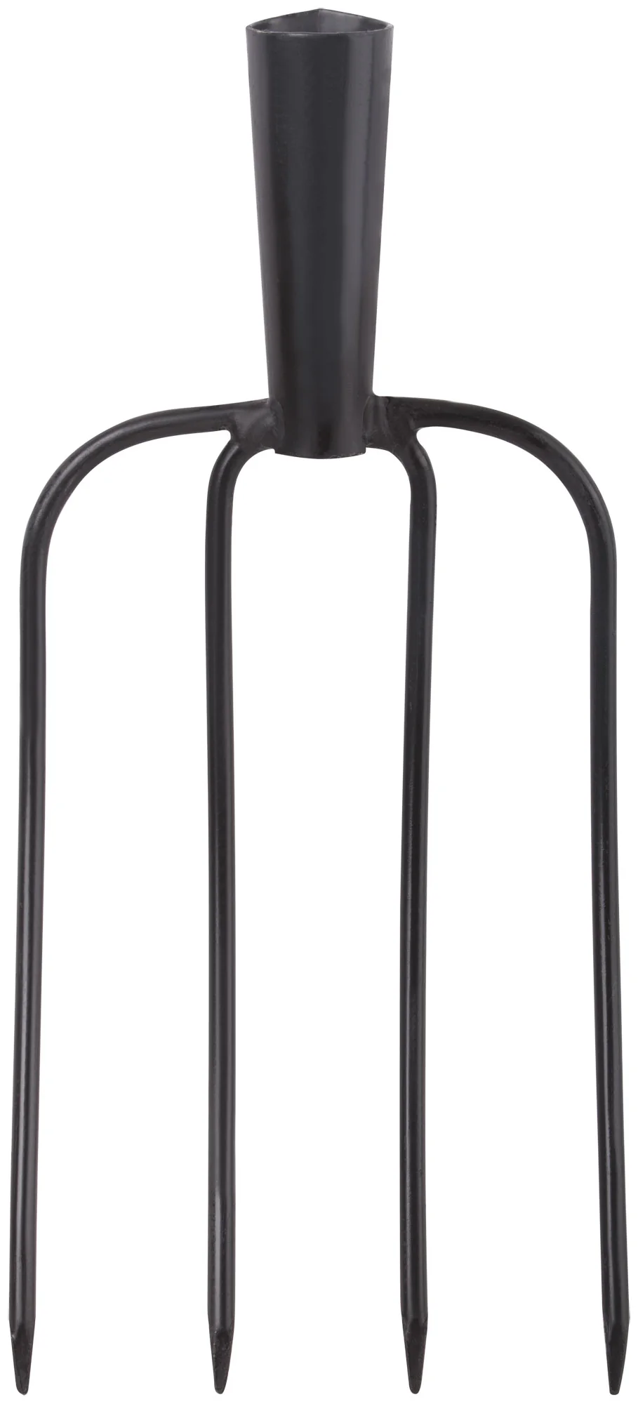 Изделие выполнено из инструментальной стали, что обеспечивает долговечность и устойчивость к механическим нагрузкам. Посадочный диаметр 40 мм позволяет использовать вилы с различными черенками, что делает их универсальным инструментом для любого хозяйства.