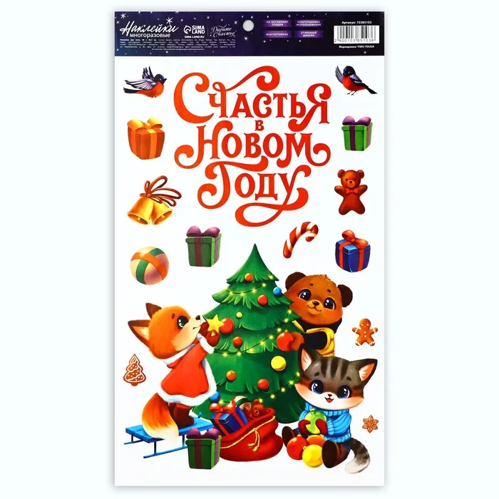 Виниловые наклейки на окна «Счастья в Новом году», многоразовые, 20 х 34.5 см — Характеристики