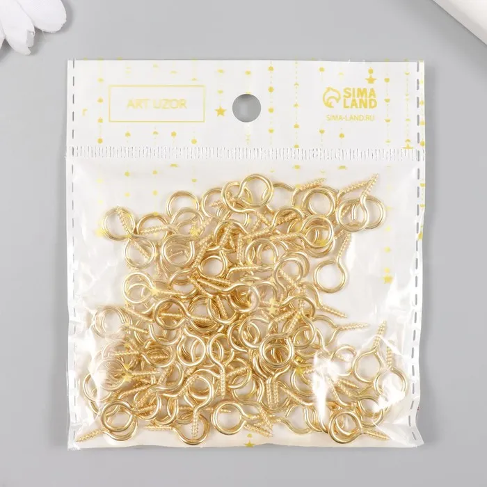 Винт-глазок для крепления картин, фоторамок золото, набор 100 шт., 1.4×0.7 см