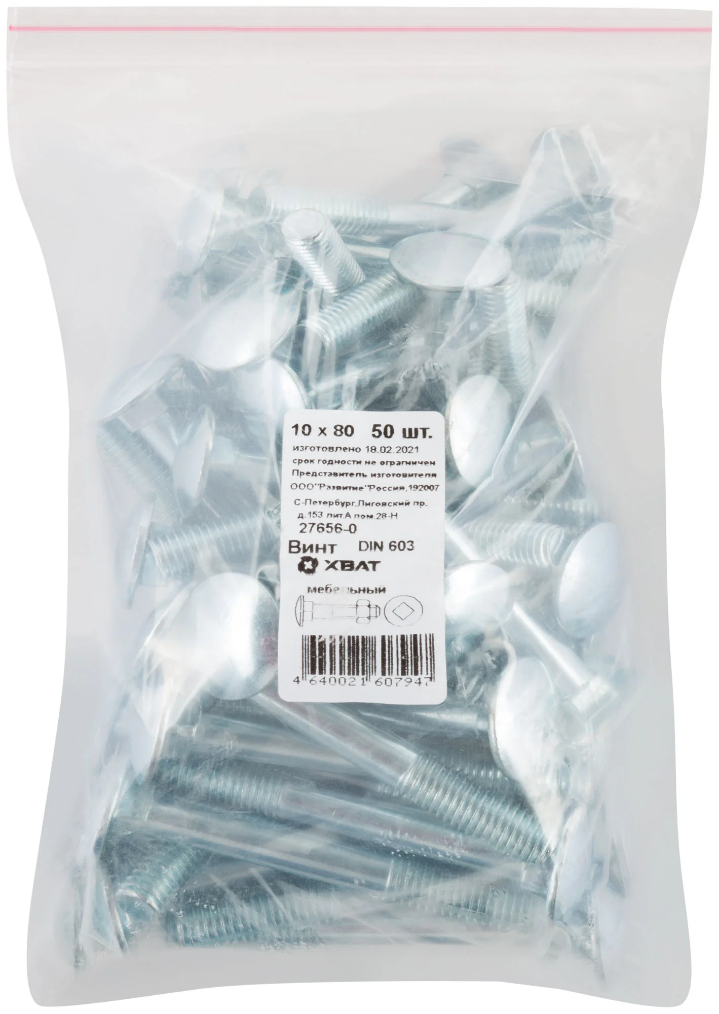 - Винты мебельные DIN 603 10х80 мм - 50 шт.