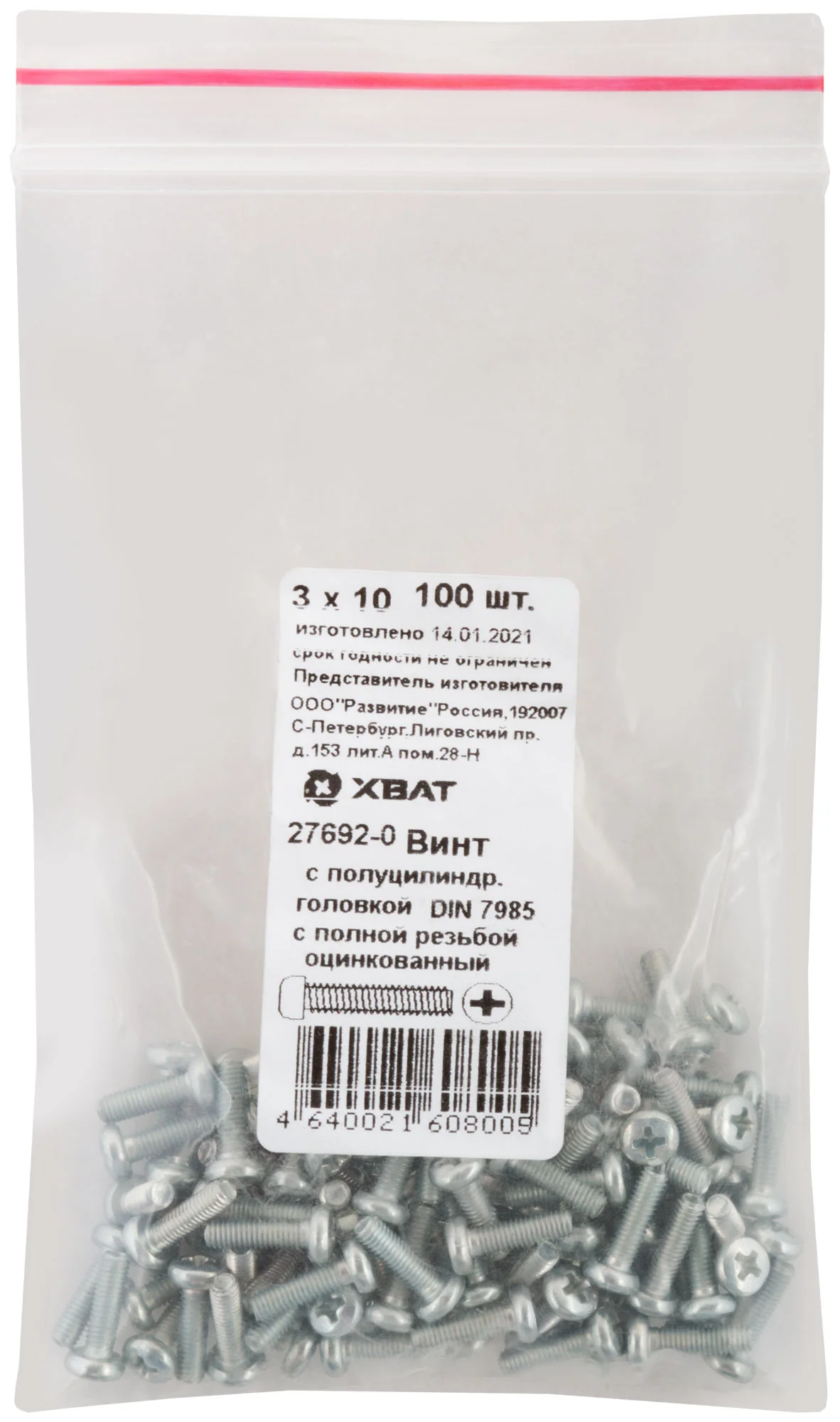 Выберите винты XВАТ DIN 7985 3х10, чтобы обеспечить надежное крепление в любых условиях. Код 27692-0.