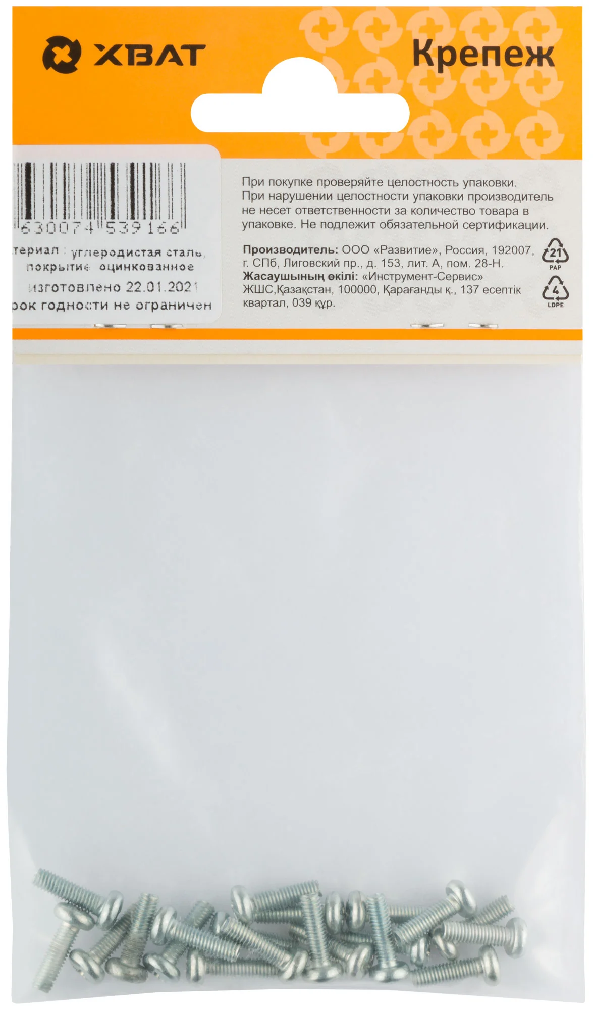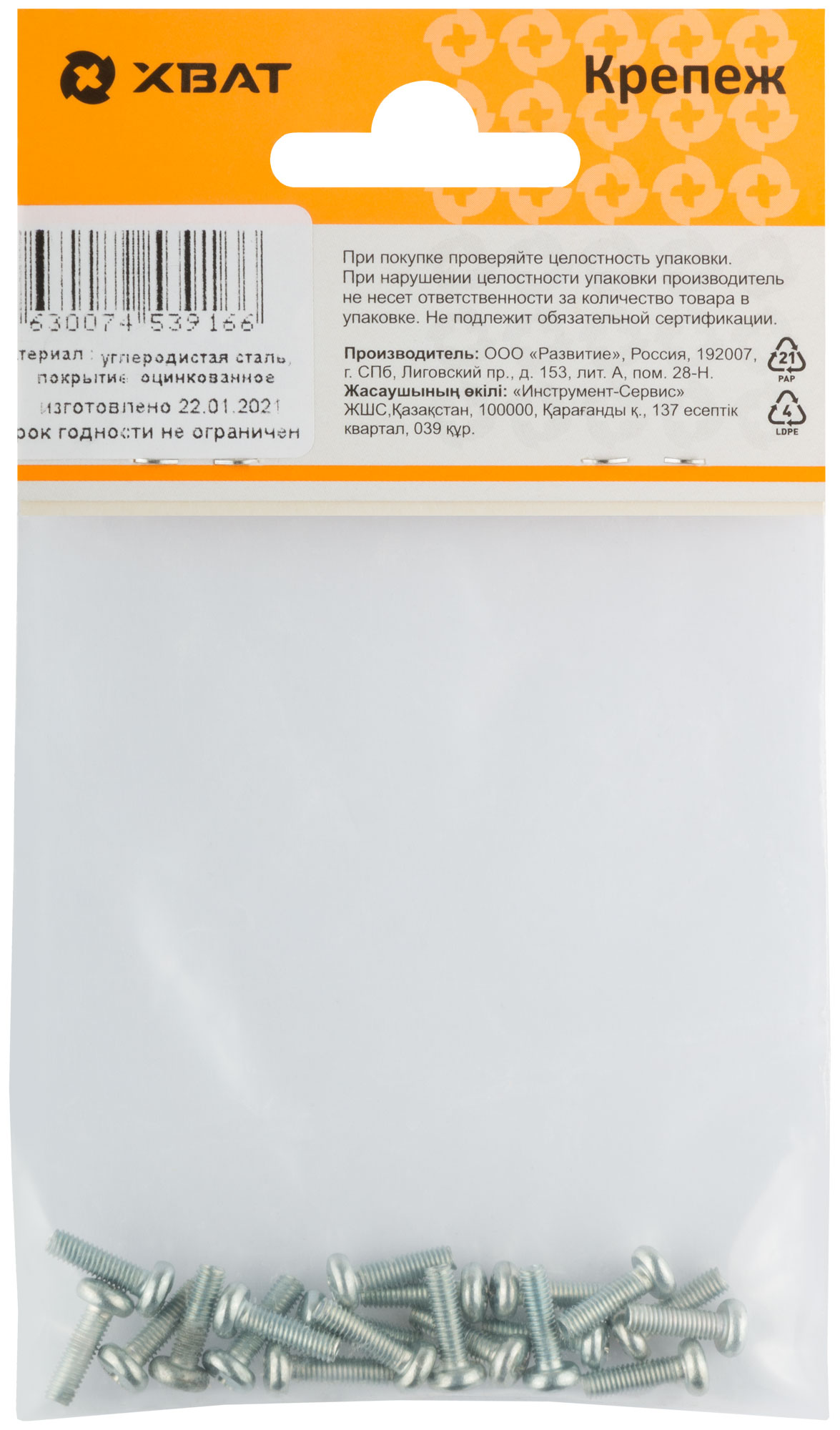 Винт изготовлен из высококачественной стали с оцинковкой, что обеспечивает защиту от коррозии. Полная резьба по DIN 7985 и крестообразный шлиц упрощают установку и демонтаж с помощью стандартных инструментов.