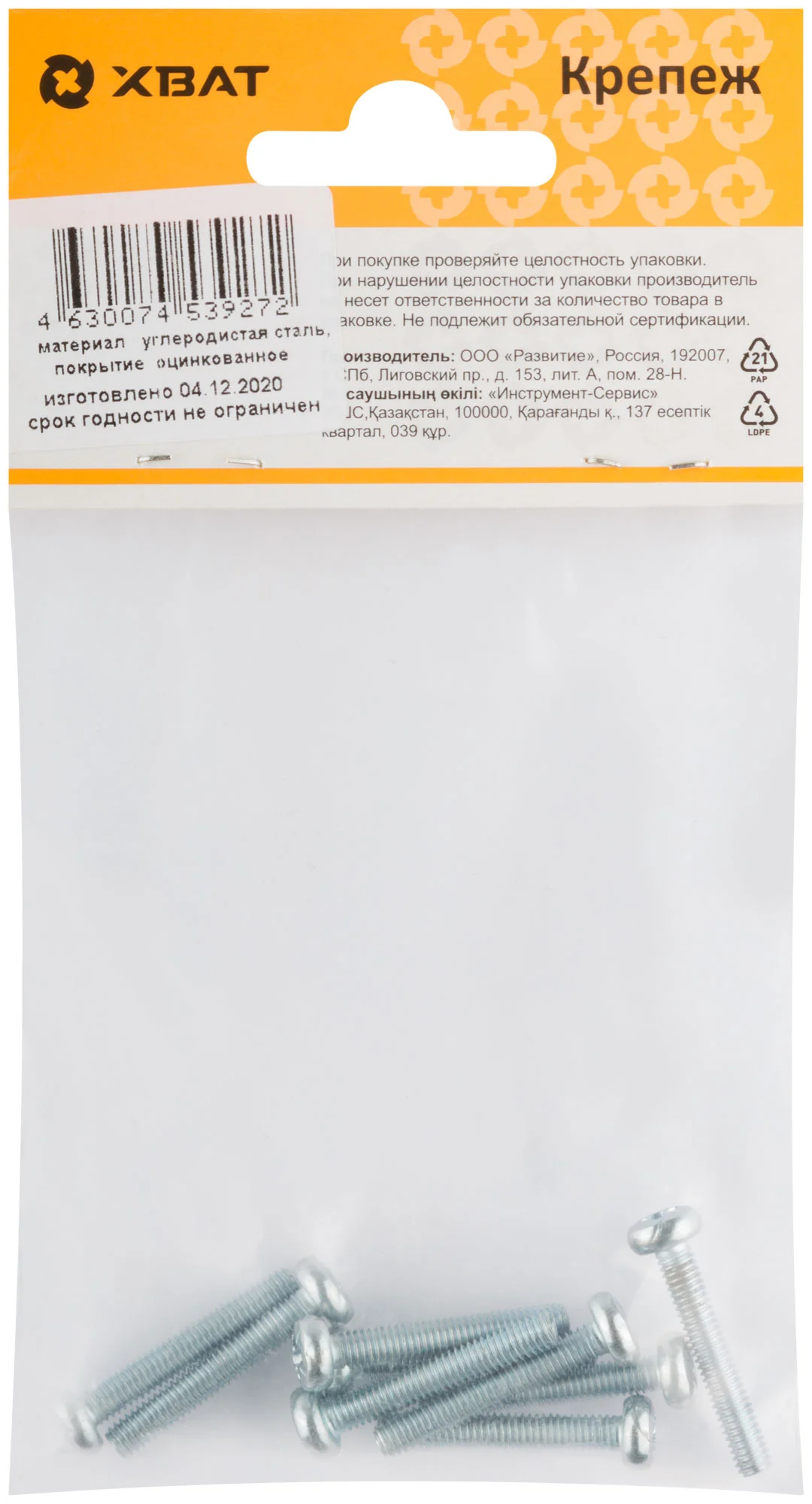 Винты изготовлены из прочной стали и имеют крестообразный шлиц, что упрощает монтаж и демонтаж с использованием стандартных инструментов. Оцинковка защищает металл от коррозии, увеличивая срок службы изделий даже в неблагоприятных условиях эксплуатации.
