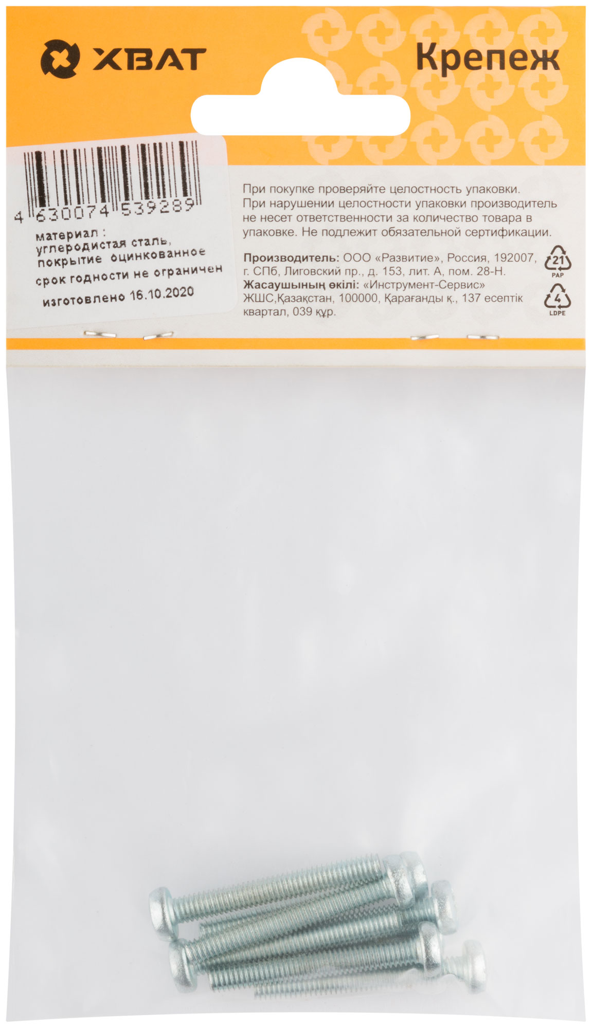 Изготовлен из прочной стали, винт покрыт слоем цинка, что обеспечивает ему долговечную защиту от коррозии. Это делает его идеальным выбором для использования в условиях с повышенной влажностью или в агрессивной среде.