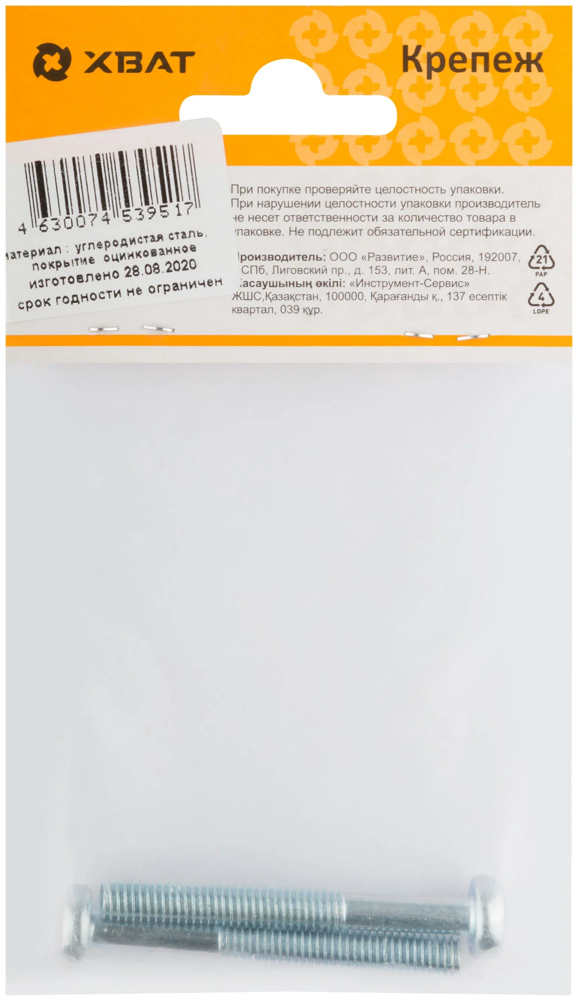 Винты изготовлены из прочной стали и имеют оцинкованное покрытие, что защищает их от коррозии и увеличивает срок службы. Полная резьба гарантирует надежное крепление, а полуцилиндрическая головка обеспечивает эстетичный вид.