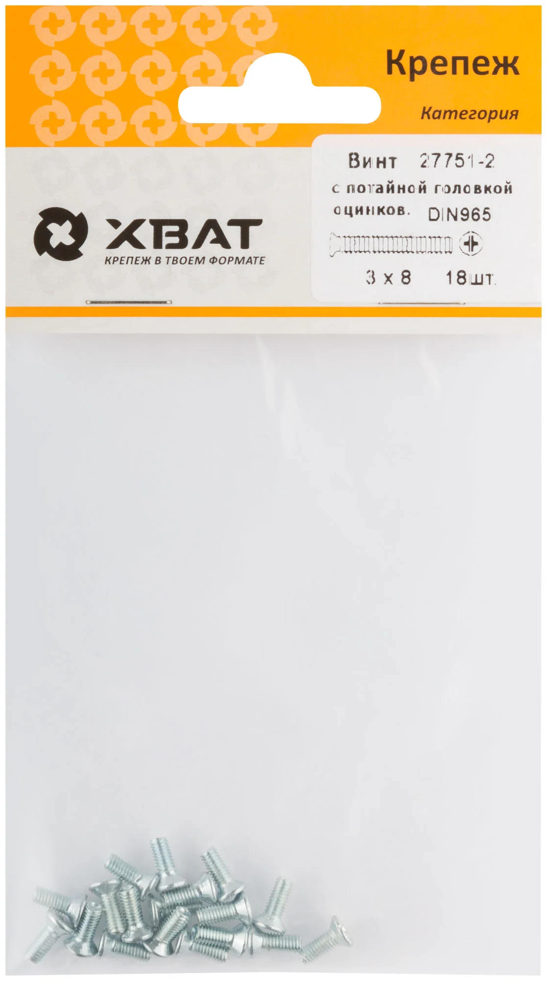 Оцинкованный винт с потайной головкой DIN 965 3х8 для крепежа