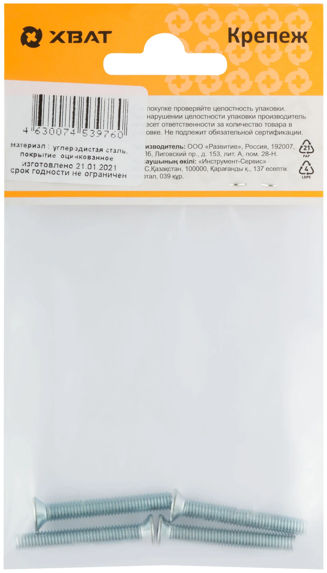 Винты изготовлены из прочной стали с оцинковкой, что защищает их от коррозии и увеличивает срок службы. Типоразмер 5х35 делает их универсальными для различных применений, а упаковка в количестве 4 штук позволяет удобно использовать их для небольших проектов.
