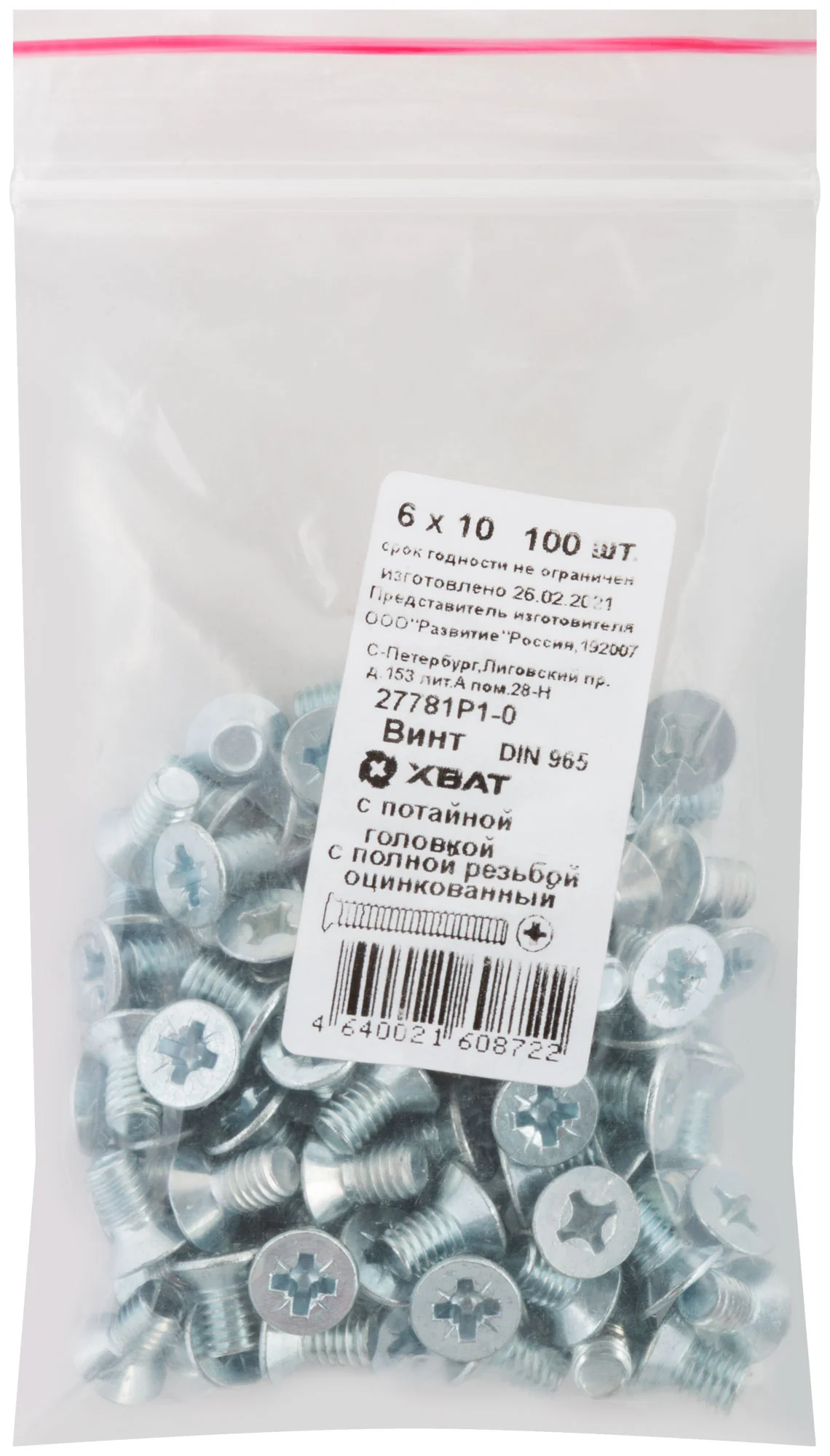 Оцинкованный винт 6х10 мм с потайной головкой для крепежа