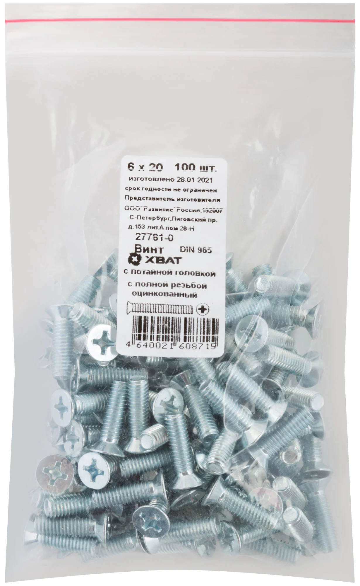 Винты с потайной головкой DIN 965 6х20 от бренда XВАТ станут незаменимыми помощниками при сборке мебели или установке различных конструкций. Благодаря полной резьбе и оцинкованному покрытию, они обеспечивают прочное и долговечное соединение.