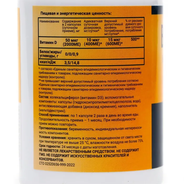Витамин D поддержка здоровья зубов и костей, 60 капсул по 0,5 г — Характеристики