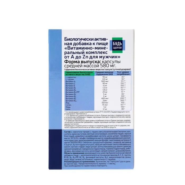 Сбалансированный комплекс витаминов и минералов для мужчин, усиленный аминокислотами L-карнитином и L-таурином. Обеспечивает организм самыми необходимыми компонентами для высокой физической активности и устойчивости к стрессам.