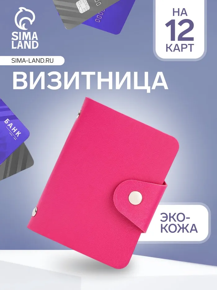 Визитница на кнопке, 12 карт, цвет фуксия — Характеристики