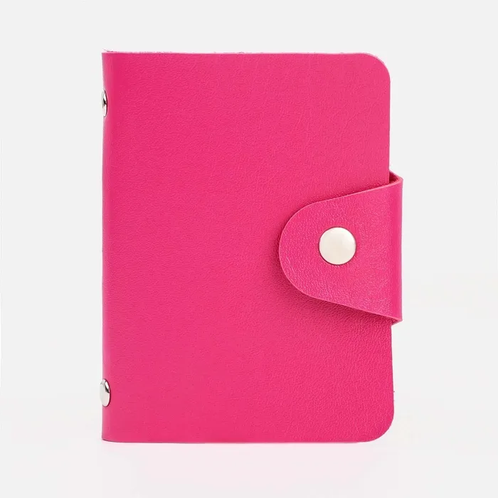 Эта розовая визитница с кнопкой сохраняет важные контакты организованно и стильно. Её яркий цвет и компактный размер делают аксессуар практичным спутником для деловых встреч и повседневного общения.