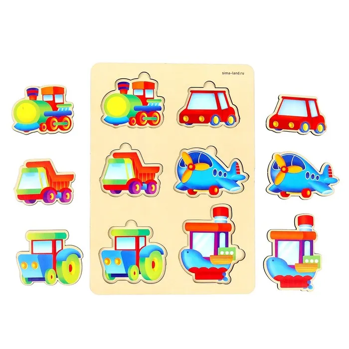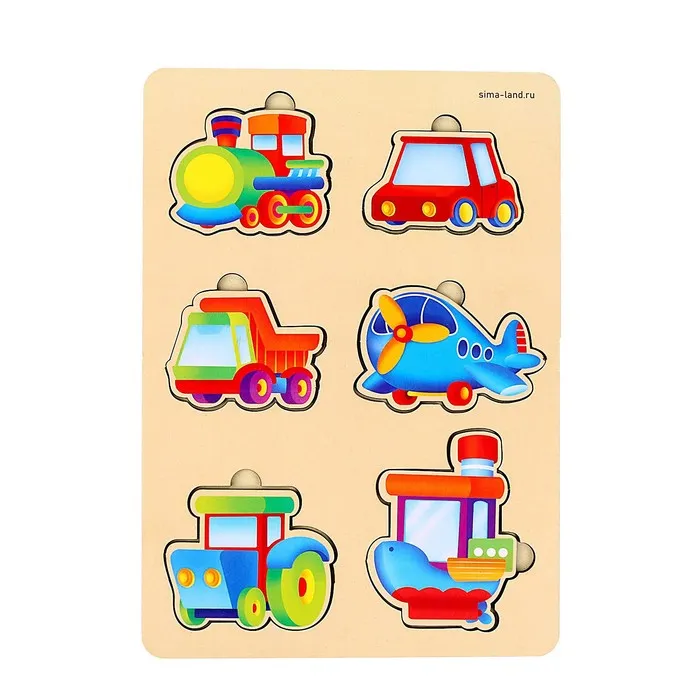 Деревянная рамка «Транспорт» — это увлекательный способ познакомить мальчиков от 3 лет с различными видами транспорта, развивая при этом логическое мышление и мелкую моторику. В комплект входят 6 элементов с изображениями машин.
