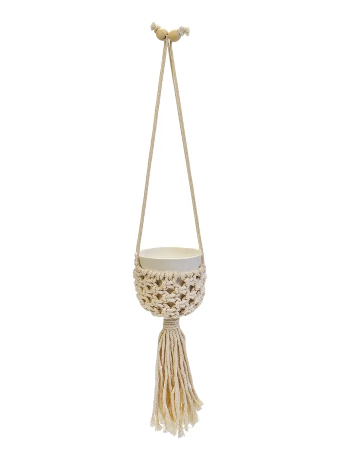Кашпо - макраме «Улла», 7×7×7 см, текстиль, подвесное, бежевое
