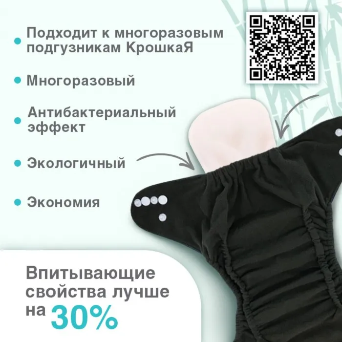 Поддержание личной гигиены является важной и необходимой частью ежедневного ухода за любимой крохой. Вкладыш в многоразовый подгузник — это именно та вещь, которая поможет родителям заботиться о ребёнке, чтобы он всегда оставался чистым и здоровым. Изделие создано из бамбукового волокна, что обеспечивает лучшее впитывание.