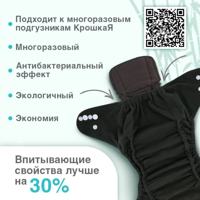 Вкладыш в многоразовый подгузник 5-ти слойный, угольно-бамбуковая ткань, Крошка Я — Характеристики