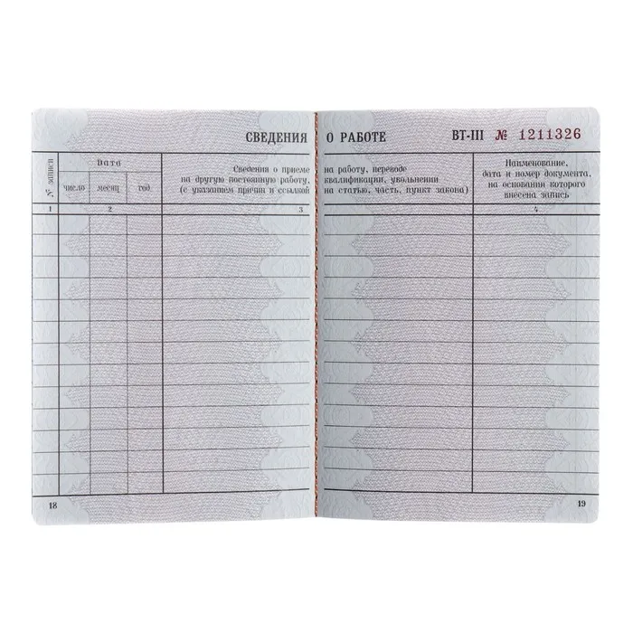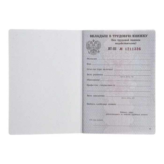 Вкладыш в трудовую книжку без голограммы — Характеристики