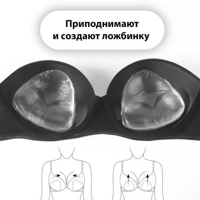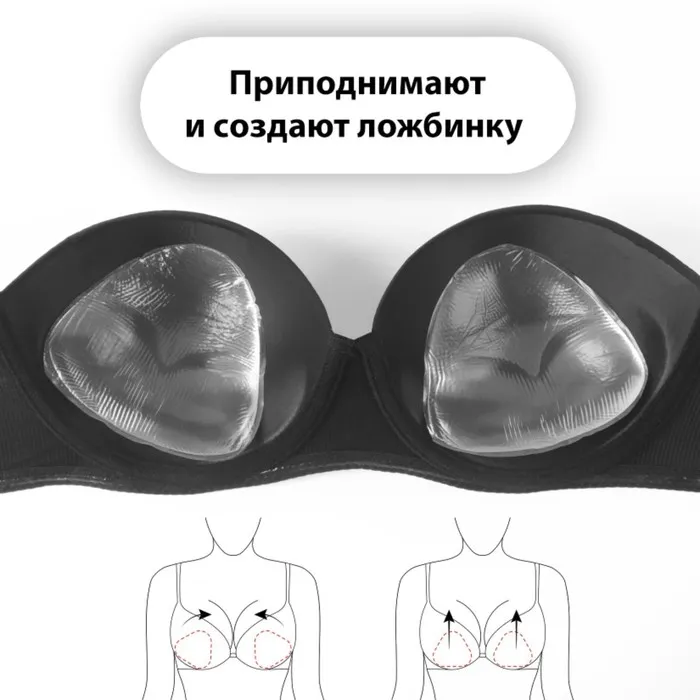 Визуально увеличивают объём на 1-2 размера. Подходят для открытых платьев с глубоким вырезом, свадебных и вечерних нарядов. Незаменимы при асимметрии – помогают выровнять пропорции.