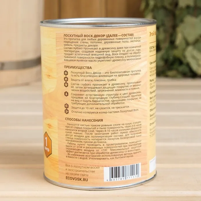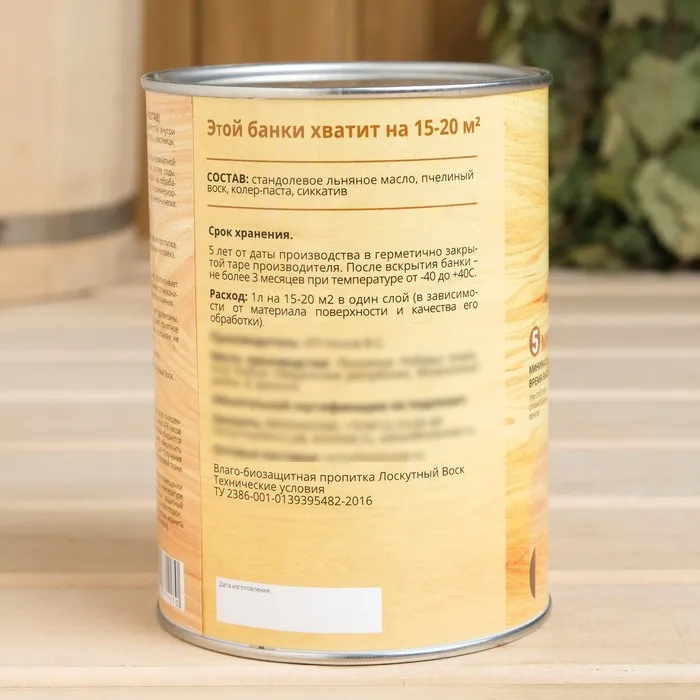 Влаго-биозащитная пропитка "Лоскутный воск ДЕКОР", лён, 1л, железная банка — Характеристики