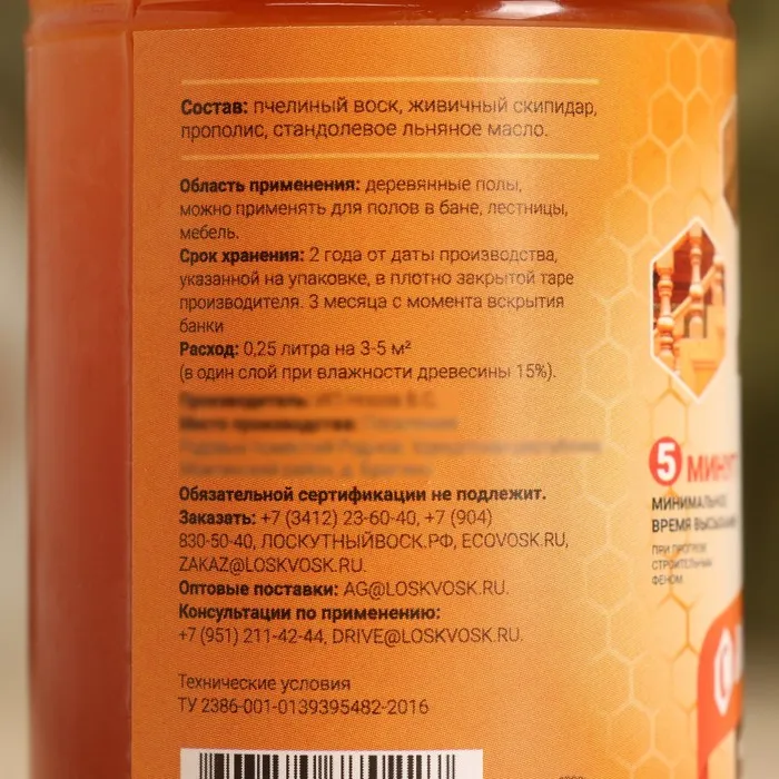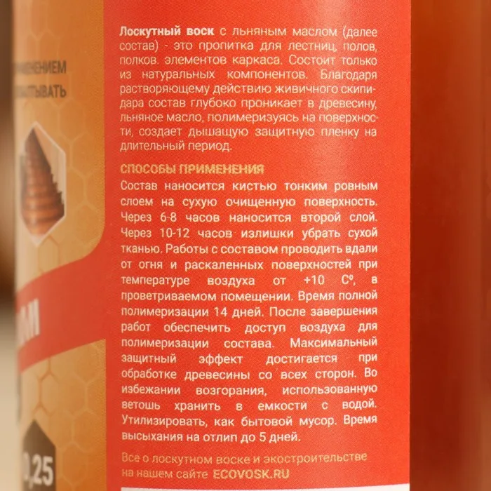 Влаго-биозащитная пропитка "Лоскутный воск" "под кисть", с льняным маслом 0,25л — Характеристики