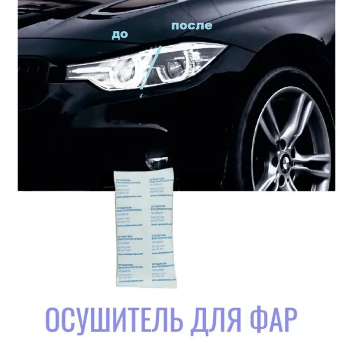 В некоторых случаях даже герметизация фары и открытие отверстий для выпуска воздуха не устраняют полностью запотевание фар. Популярный способ – использовать влагопоглотители для фар. Это небольшие пакетики с гранулами силикагеля , того самого препарата, который используется в автомобильном или домашнем осушителе. Влагопоглотитель осушитель для фар головного света автомобилей изготовлен из специального силикагеля с высокими абсорбирующими характеристиками. Применяется для предупреждения и устранения запотевания, возникшем из-за попадания влаги через технологические отверстия. Идеален при ретрофите, когда после установки LED модулей изменяется тепловой баланс фары и она потеет. Поглощает более 30% воды от собственного веса. Упаковка не рвется даже при неосторожном использовании.