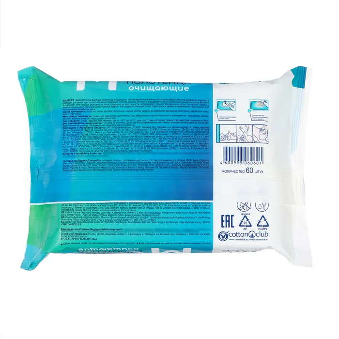 Влажные полотенца гипоаллергенные Maditol Pharma бережно очищают чувствительную кожу. В состав входит витамин Е, который способствует восстановлению кожных покровов, а витамин А оказывает смягчающее действие, повышая эластичность кожи и активизируя процесс восстановления клеток. Череда и ромашка оказывают противовоспалительный эффект. Влажные полотенца не содержат этиловый спирт и содержат 97% натуральных ингредиентов. Подходят для ухода за лежачими больными.