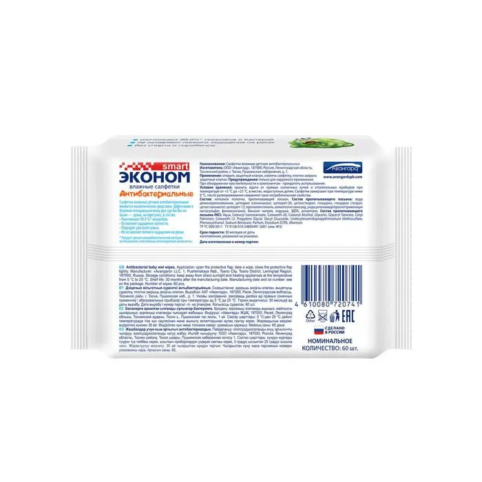 Салфетки влажные детские антибактериальные являются косметическим средством, эффективно и бережно очищают кожу рук, где бы вы ни были - дома, на прогулке, в гостях. Уничтожают 99,9% микробов. Оставляют ощущение свежести. Подходят для всей семьи. Не оставляют липкого ощущения на руках. Продукт прошел микробиологический контроль по показателю "собственная антимикробная активность".