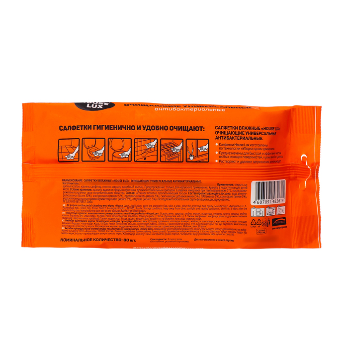 Влажные салфетки House Lux, антибактериальные, 6 in 1, 80 шт. — Характеристики