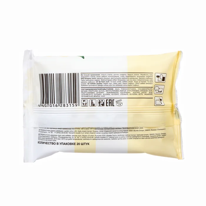 Влажные салфетки Premial, для интимной гигиены с молочной кислотой, 20 шт. — Характеристики