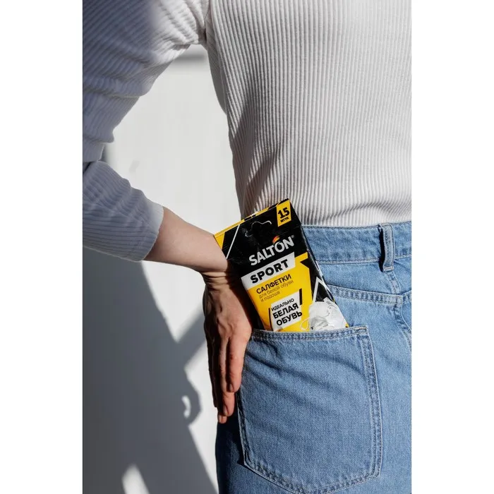 Салфетки SALTON Sport пропитаны специальной эмульсией с активными компонентами. Благодаря их действию такое уходовое средство для обуви эффективно и быстро справляется с очищением и не оставляет грязные разводы в отличие от обычных влажных салфеток.