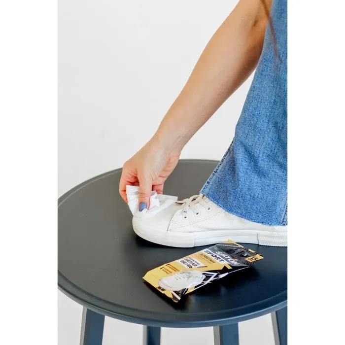 Благодаря компактному размеру их легко взять с собой: упаковка салфеток для обуви поместится в сумке, рюкзаке или даже кармане. Вы сможете легко и быстро освежить поверхность от пыли, очистить её от лёгких загрязнений и вернуть белизну подошвам, где бы вы ни находились.