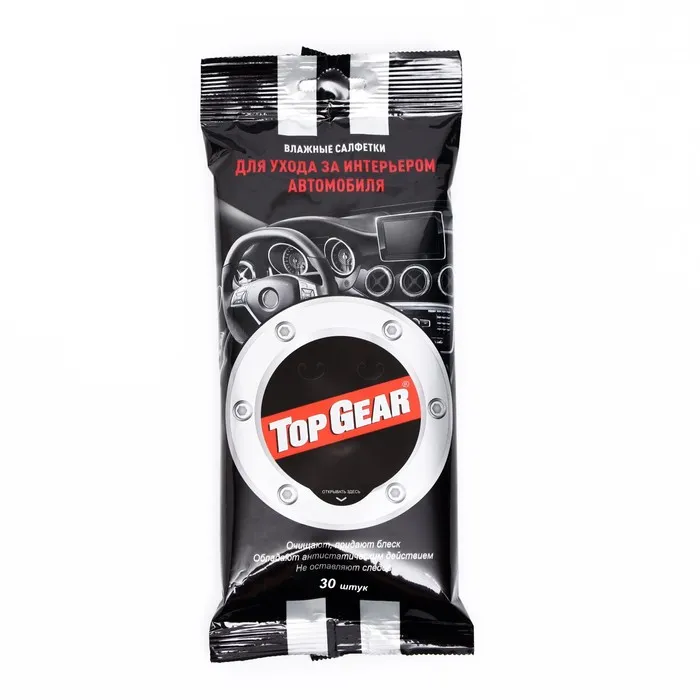 Влажные салфетки Top Gear, для салона автомобиля, 30 шт.