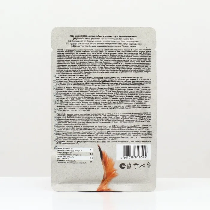 Влажные корма для собак используются в разных смешанных рационах. Их можно давать в дополнение к натуральной пище или сухим гранулам. Норма кормления указана на упаковке.