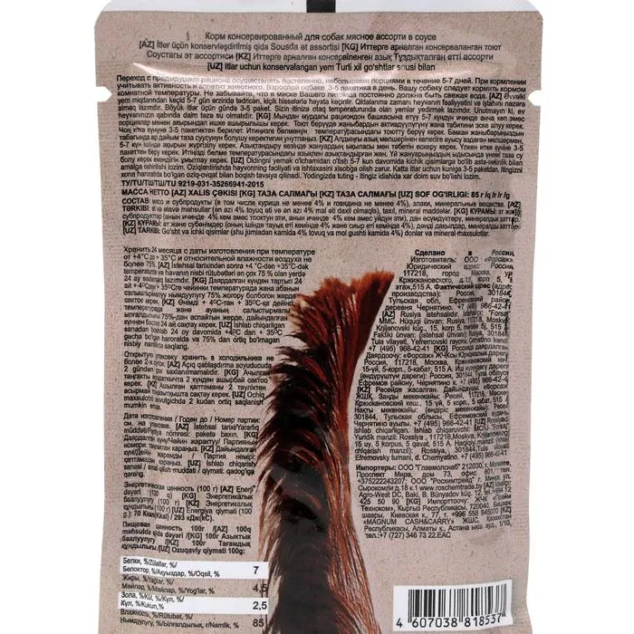 Влажный корм Chammy для собак, мясное ассорти в соусе, 85 г — Характеристики